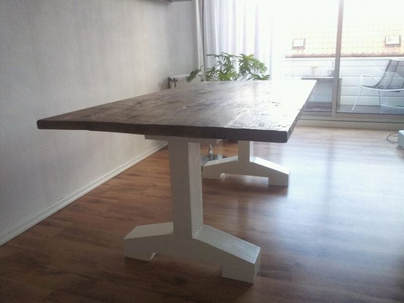 De lade is voorzien van een geleider en de industriele bakken komen uit de jaren 70.